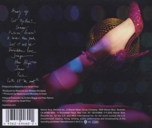 Superb CD makes the whole mood.”Confessions On A Dance Floor” is a disco-tastic 🔥 masterpiece! Madonna’s iconic album blends retro vibes with modern beats, creating an irresistible to dance . With hits like “Hung Up” and “Sorry”, it’s a must-have for fans and dance music lovers. Full of energy and danceable at the same time. You’ll love this album.