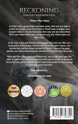 Reckoning is the intense fourth installment in the Songs of Chaos epic fantasy series, pushing the story into a full-scale war where dragons, riders, and kingdoms collide. The narrative follows Holt and his dragon Ash as they defend the Fae Forest, while Talia, Rake, Osric, and others face their own battles and moral dilemmas in a world teetering on chaos and destruction. With complex character development, multiple perspectives, and high-stakes conflict, the novel blends action, emotional depth, and moral weight as heroes confront painful choices and the brutal costs of survival.