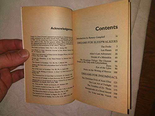 Thomas Ligotti’s “Songs of a Dead Dreamer” is a dark, unsettling collection of short stories blending existential horror and weird fiction. Dense, poetic writing explores themes of nihilism and blurred reality. Not for the faint of heart! 😊