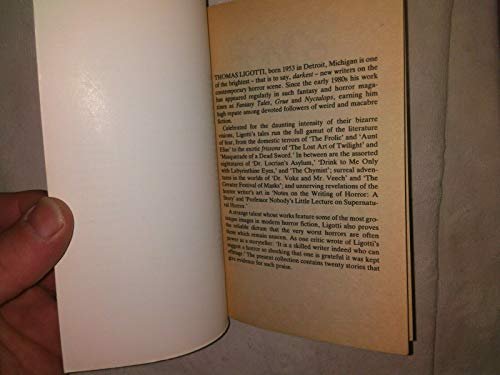 Songs of a Dead Dreamer was Ligotti’s first published collection, and it shows somewhat in the fluidity of his plot points. He tries several weird themes, and succeeds excellently in some and not as well in others. Of particular note is “Alice’s Last Adventure,” which relates the twilight years of an alcoholic children’s book author, and of a fictional malevolent boy that may or may not be exerting his influence. Ligotti successfully conveys a feeling of deep dread by evoking familiar