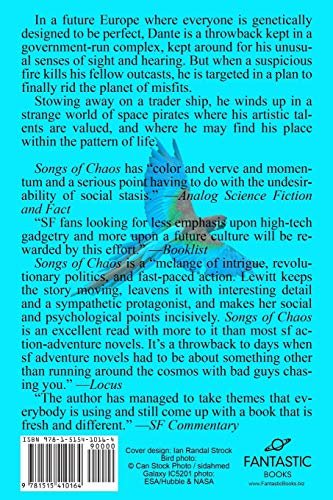 Songs of Chaos is a “melange of intrigue, revolutionary politics, and fast-paced action. Lewitt keeps the story moving, leavens it with interesting detail and a sympathetic protagonist, and makes her social and psychological points incisively. Songs of Chaos is an excellent read with more to it than most sf action-adventure novels. It’s a throwback to days when sf adventure novels had to be about something other than running around the cosmos with bad guys chasing you.” –Locus